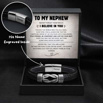 Engrave your nephew's name on the knot bracelet, making it a truly unique present. Let him know that he's irreplaceable in your heart.