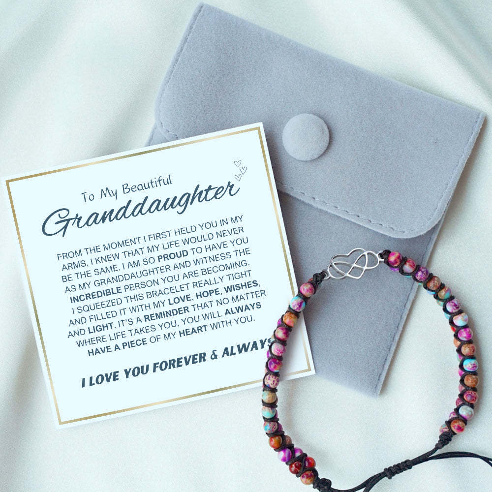 Let your granddaughter carry your love wherever she goes with this special gift set. The touching message card and beautiful bracelet will ensure that your love remains forever in her thoughts.